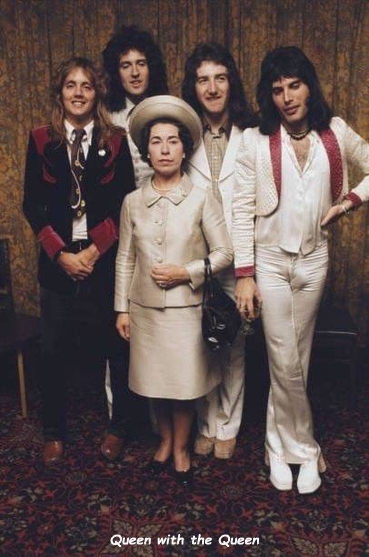 Rock group Queen with “Her Majesty” January 6, 2026 by Mike (Professional impersonator Jeannette Charles) Does Jeannette Charles look familiar? She should: